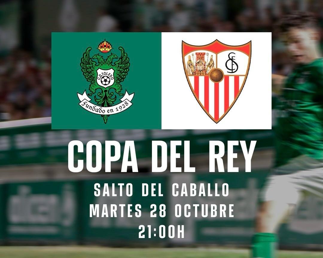 El Club Deportivo Toledo informa a sus abonados y aficionados sobre el proceso de venta de entradas para el encuentro correspondiente a la primera ronda de la Copa del Rey, que enfrentará al CD Toledo y al Sevilla FC el próximo martes 28 de octubre a las 21:00 horas en el Estadio Salto del Caballo.